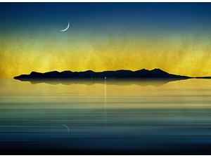 36°36'58.2"N 24°58'56.8"E / Panoramic Sunset View of Folegandros island (Aegean Sea, Cyclades, Greece) Looking South-West from the sea.